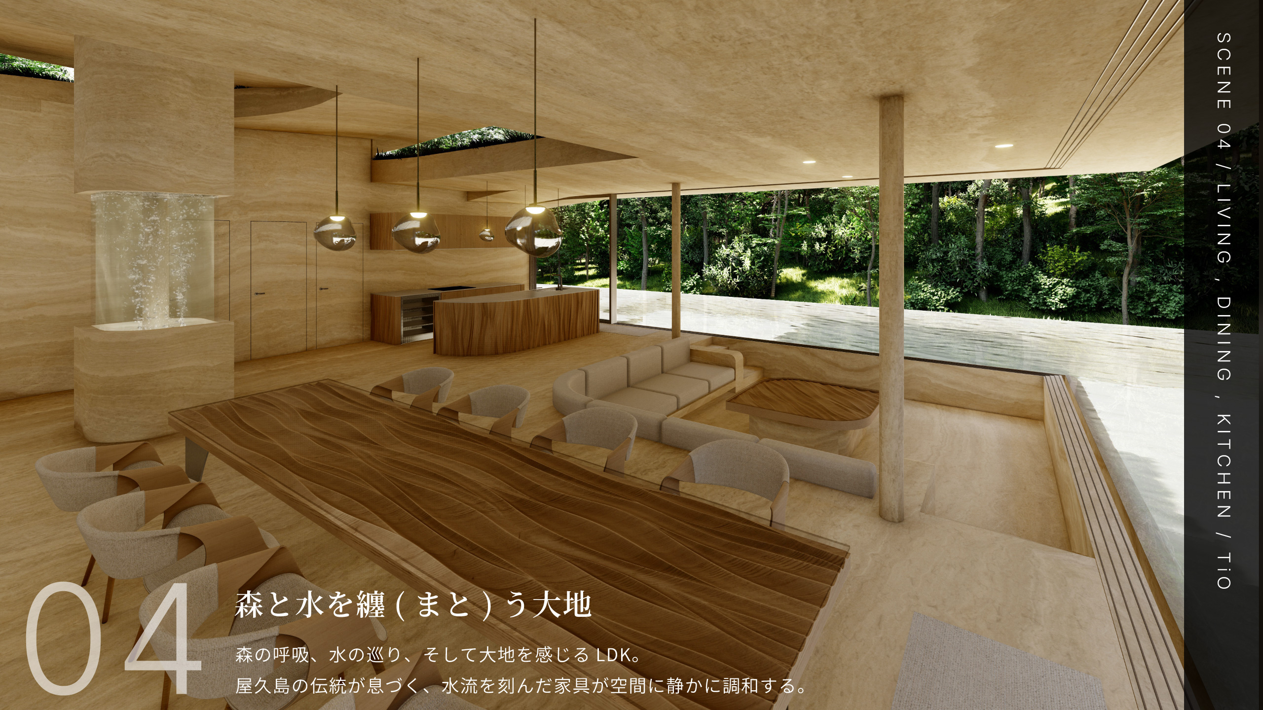 100%の循環がもたらす、新しい自然との境界。 屋久島の息づかいに包まれる。これまでにない建築体験がここから始まります。